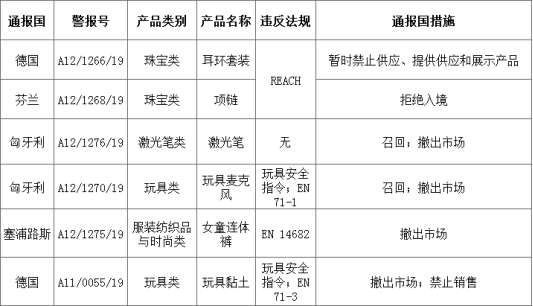贸促〔2019〕0540号预警信息:欧盟非食品快速预警系统RAPEX通报2019年第34周