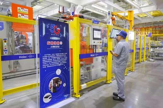 一名工人在海尔天津洗衣机互联工厂操控设备。资料照片