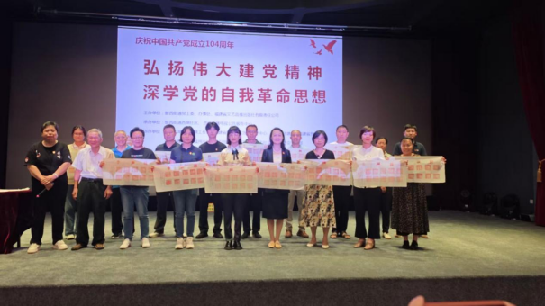为热烈庆祝中国共产党成立104周年,深入学习贯彻党的创新理论,传承红色基因,凝聚奋进力量,7月1日,省贸促会机关党委联合鼓西街道西湖社区、福建省文艺音像出版社在西湖影剧院举办“弘扬伟大建党精神,深学党的自我革命思想”主题活动。社区党员群众、共建单位代表等150多人齐聚一堂,共赴一场铭记初心、砥砺前行的精神盛宴。