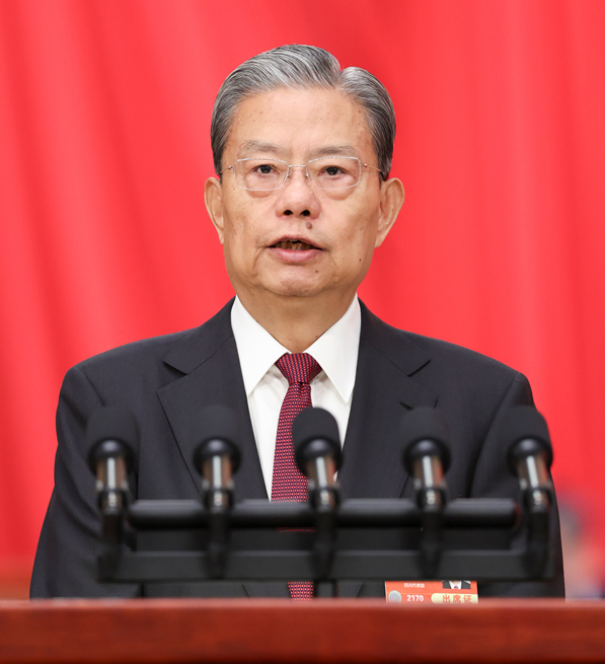 3月8日,十四届全国人大三次会议在北京人民大会堂举行第二次全体会议。受全国人大常委会委托,赵乐际委员长向大会报告全国人大常委会工作。新华社记者 丁海涛 摄