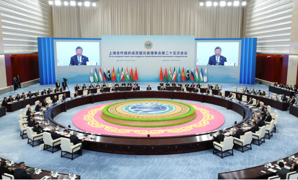 9月1日上午,上海合作组织成员国元首理事会第二十五次会议在天津梅江会展中心举行。中国国家主席习近平主持会议并发表题为《牢记初心使命 开创美好未来》的重要讲话。新华社记者 谢环驰 摄