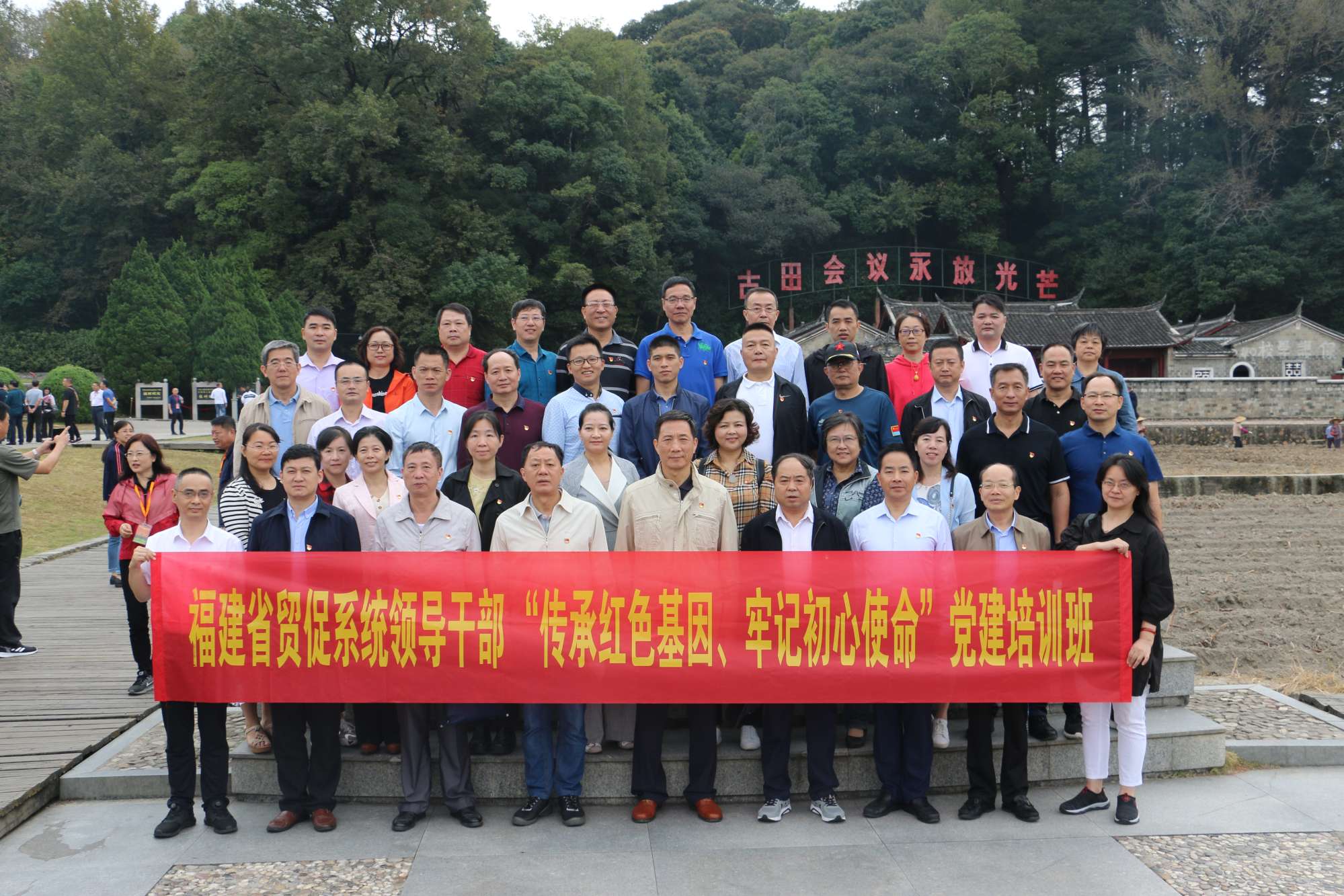 为进一步巩固“不忘初心、牢记使命”主题教育成果,持续强化贸促会党的群团组织属性,落实贸促系统深化改革关于全面加强党对贸促会领导的要求,推动全省贸促系统党建工作, 10月22日至24日,省贸促会在龙岩举办“传承红色基因、牢记初心使命”党建培训班,全省贸促系统42位处级干部参加培训。