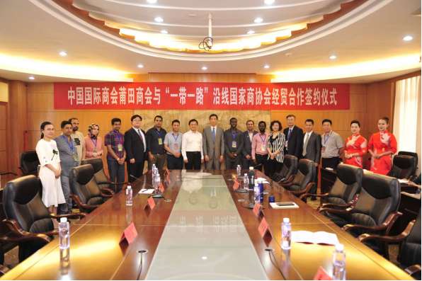 为深入推进莆田与“一带一路”沿线国家经贸合作交流,此次艺博会的亮点之一就是由莆田市贸促会专门举行了中国国际商会莆田商会与“一带一路”沿线国家商协会经贸合作签约活动。福建省贸促会会长陈震、中国贸促会福建自贸区服务中心执行主任陈朝晖、莆田市贸促会会长林丽英以及外国商协会代表出席了签约仪式。