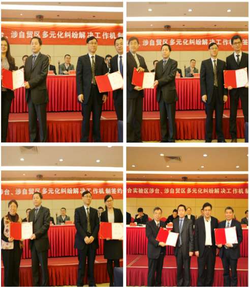 会上,中国国际经济贸易仲裁委员会副主任兼秘书长、海峡两岸仲裁中心副主任兼秘书长王承杰,平潭综合实验区人民法院院长丁仰豪院长,福建省企业顾问法律协会副会长许步国,三方共同签署了共建涉台、涉自贸区多元化纠纷解决工作机制合作协议,并为聘任的专家咨询顾问及调解员颁发聘书。台湾中华仲裁协会李复甸理事长等19名两岸法律专家受聘为专家顾问,有30名两岸专家受聘为调解员。受聘的两岸专家代表表示,将积极参与涉台、涉自贸区多元化纠纷解决工作机制,承担责任,推动工作机制在两岸争议解决中发挥积极的作用。