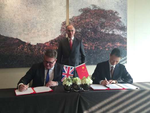 张秋会长同英中贸协总裁傅仲森签订谅解备忘录,英中贸协主席沙逊勋爵见证
