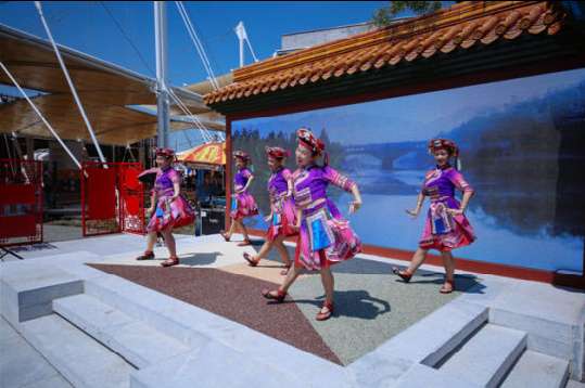 福建活动日的中国馆好戏连台,先后演出中国稀有剧种,包括闽剧《双骄公主》、高甲戏《公子坐场》、掌中木偶戏《布袋杂耍》等,演绎了福建传统戏剧的千年雅韵;畲歌畲舞表演,洋溢着浓浓的福建民族独特风俗风情,将观众的思绪引向福建畲乡浓郁的“山哈”芬芳;咏春拳与福建龙人古琴的联袂表演,音乐、武术相融合,让观众沉醉在福建非遗传承技艺刚柔并济的律动之美。