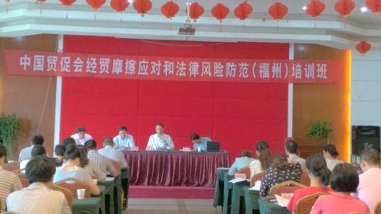 为扩大贸促会公共法律服务功能,及时开展贸促系统新增经贸摩擦应对工作,提升地方贸促机构经贸摩擦应对工作水平及进出口企业抵御经贸摩擦应对的能力,由中国贸促会主办,我会承办的“经贸摩擦应对和法律风险防范培训班”于6月18-19日在福州海上明珠酒店举办。我会张秋会长出席并致辞,中国贸促会法律部王承杰部长、国家知识产权局徐俊峰处长、福建省知识产权局黄平副局长、我会吴开文巡视员以及我省贸促机构和相关重点企业等共计160多位代表参会。