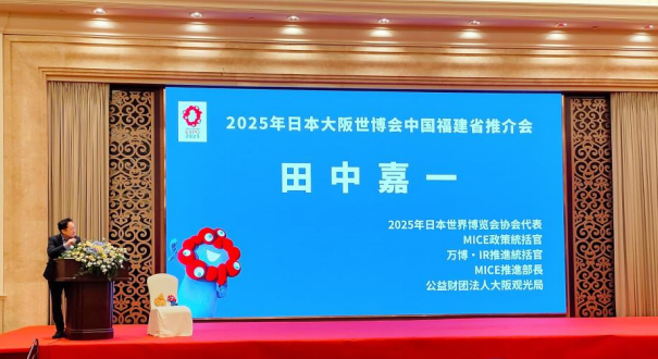 2025 年日本世界博览会协会代表兼 MICE 政策统括官兼万博·IR 推进统括官兼 MICE 推进部长、公益财团法人大阪观光局田中嘉一先生介绍大阪世博会场馆设计、参会交通、活动最新筹备和票务发售等相关情况。据悉,2025 年日本世界博览会是注册类(大)世博会,简称“大阪世博会”,将于2025年4月13日至10月13日在日本大阪举行。博览会将以“构建未来社会,想象明日生活”为主题,围绕“健康生活的多种方式”和“可持续社会经济系统”两大核心探索如何实现社会可持续发展。