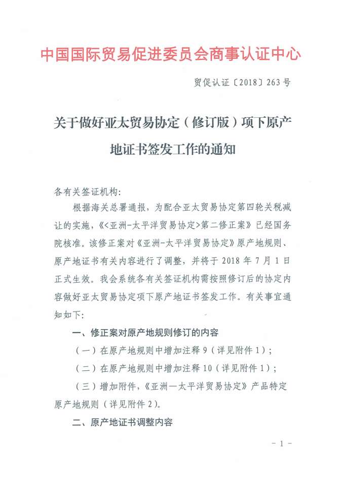 关于做好亚太贸易协定(修订版)项下原产地证书签发工作的通知