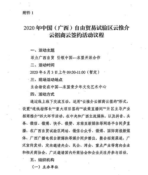 附件: 1. 2020年中国(广西)自由贸易试验区云招商云签约活动活动议程